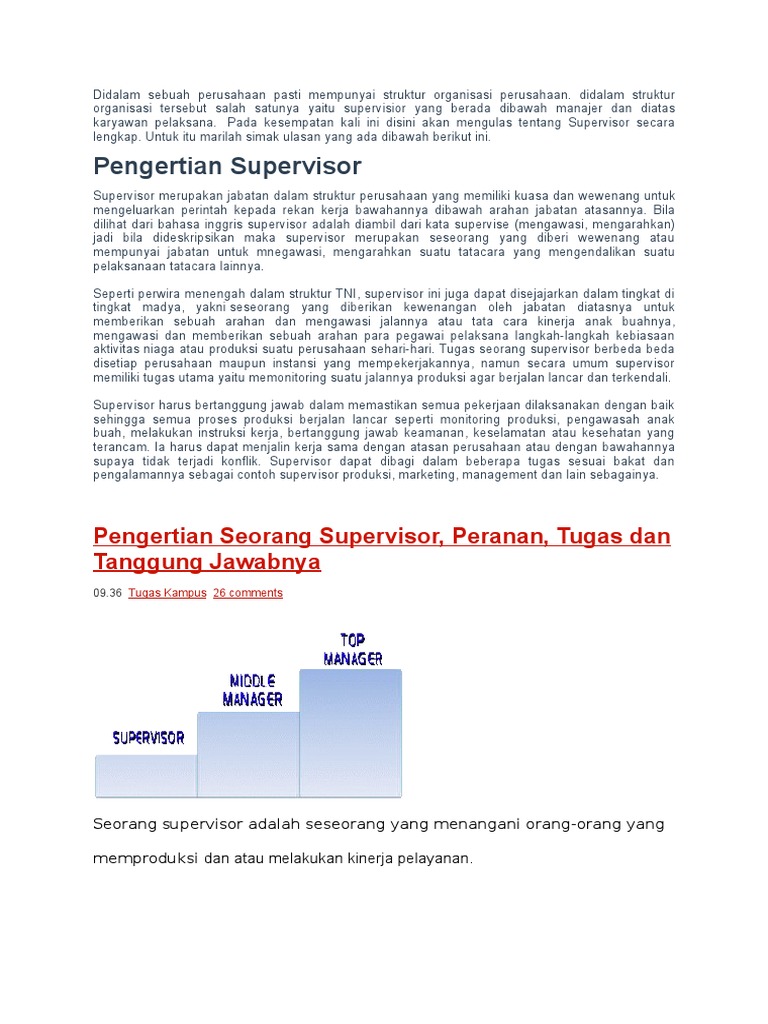 Supervisor Adalah - Jul 05, 2021 · stakeholder adalah dari suatu masyarakat, kelompok, komunitas maupun individu manusia yang akan memiliki hubungan atau kepentingan terhadap suatu organisasi dan perusahaan.. Jul 01, 2021 · kedudukan supervisor dalam organisasi. • usually the staff member posting the correction signs the correction voucher and presents it to the front office manager or supervisor on duty for review and approval. Klausa dikatakan berpotensi menjadi kalimat sebab secara sekilas dia terlihat mirip dengan kalimat, perbedaan hanya ada pada ketiadaan intonasi serta tanda baca pada klausa. Diving most often refers to: Supervisor adalah seorang manajer yang bertanggungjawab kepada manajer yang lebih tinggi dan tugas utamanya memimpin pekerja pada taraf operasional.